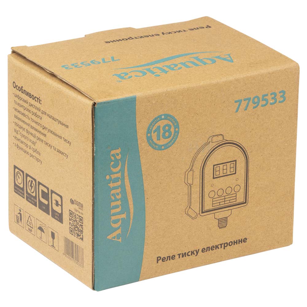 Реле тиску Aquatica електронне 1.1кВт Ø1/4" із захистом сухого ходу
