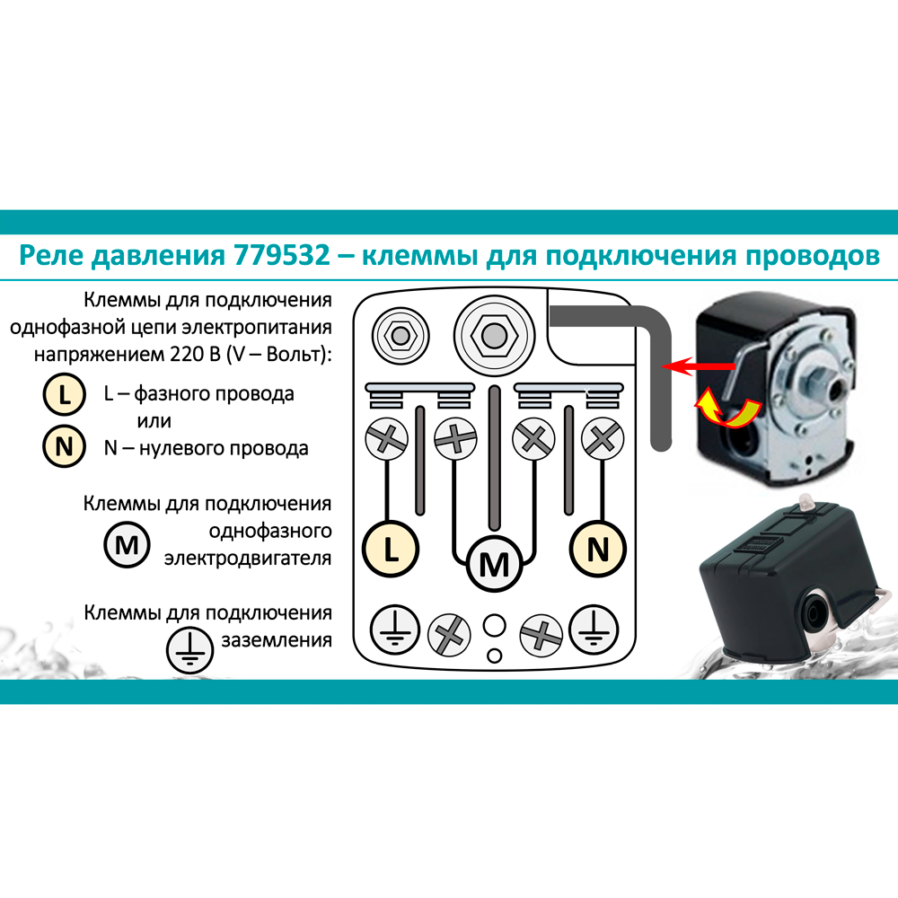 Реле тиску Aquatica сухого ходу 1.4-2.8 бар (гайка)