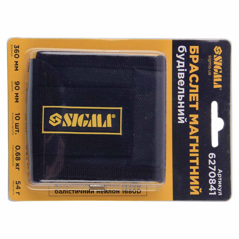 Браслет магнитный Sigma строительный 360 х 90 мм, 10 магнитов, баллистический нейлон 1680D