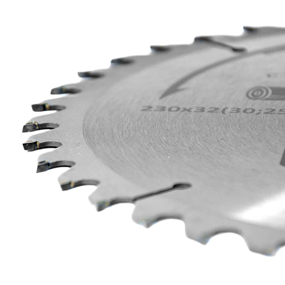 Диск пильный по дереву Grad с твердосплавными напайками Ø230 x 32 (30, 25.4) x 40Т, 6000об/мин - силовая оснастка для промышленного использования. Обеспечивает стабильную работу на станках при распиловке тяжелой древесины.