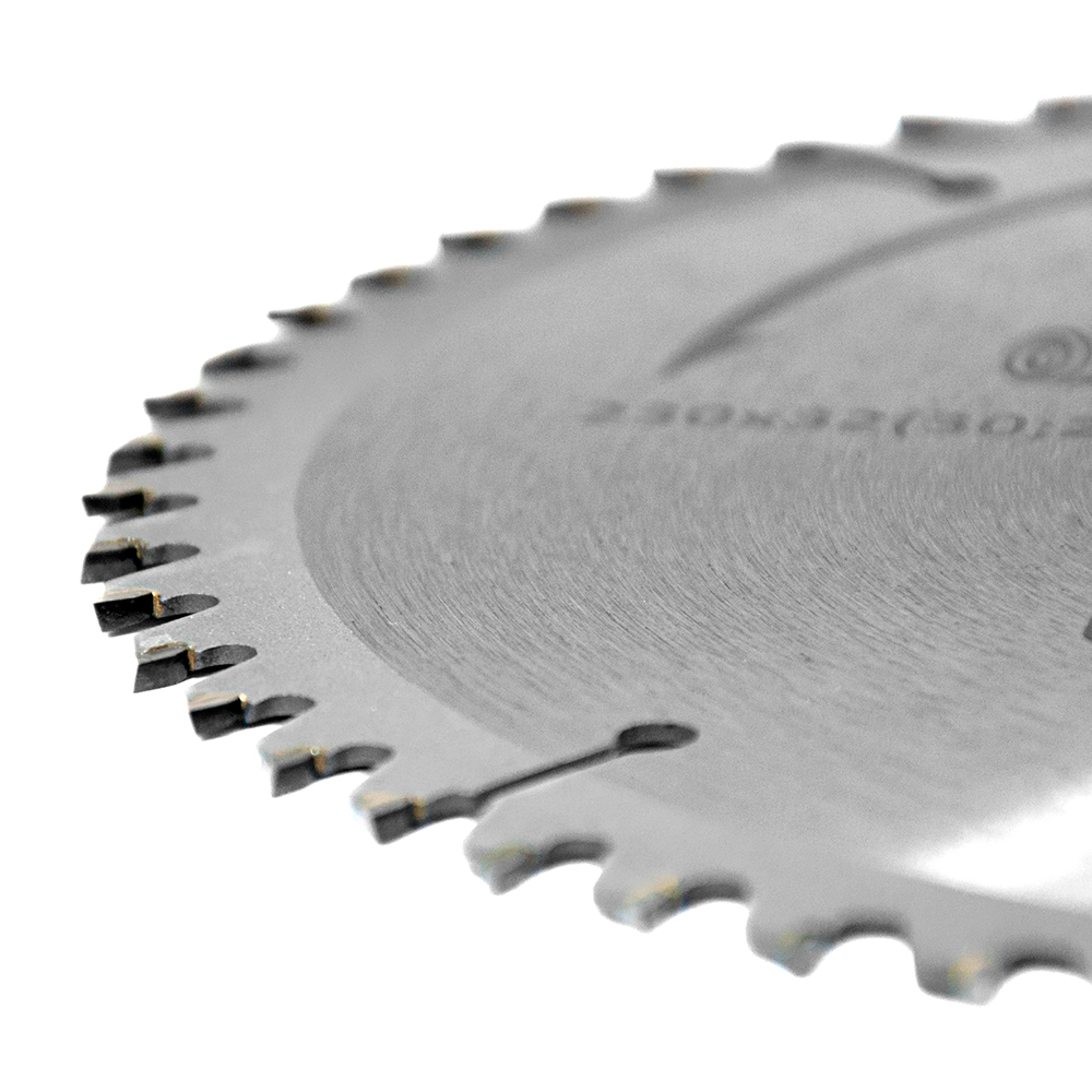 Диск пильный по дереву Grad с твердосплавными напайками Ø230 x 32 (30, 25.4) x 60Т, 6000об/мин - профессиональное полотно для мебельных цехов, требующих безупречного качества края на крупных деталях. Оснащено специальными отверстиями для охлаждения.