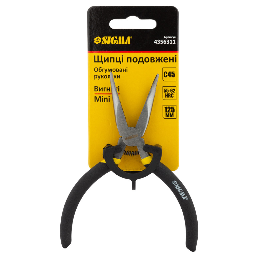 Длинногубцы Sigma Mini изогнутые обрезиненные рукоятки 125 мм