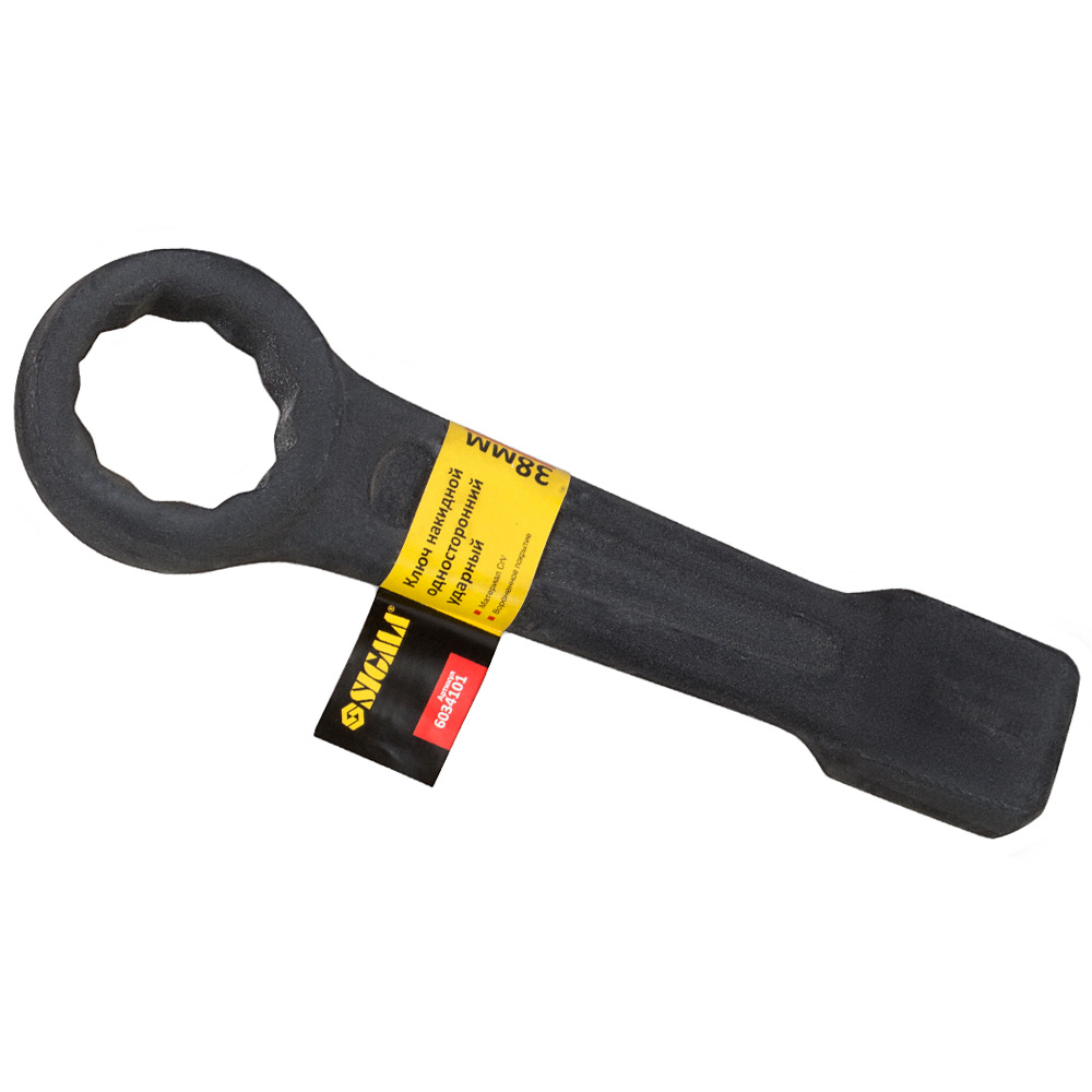 Ключ накидной Sigma CrV односторонний ударный 38 мм - это мощное приспособление для силового монтажа и демонтажа ответственных резьбовых соединений в промышленности и автосервисе. Отличительной чертой изделия является массивная конструкция с ударной площадкой на рукоятке, рассчитанная на значительные динамические нагрузки при откручивании "закисших" болтов. Выполненный из легированной стали CrV с воронением, этот инструмент гарантирует надежность и безопасность при выполнении самых сложных слесарных работ.