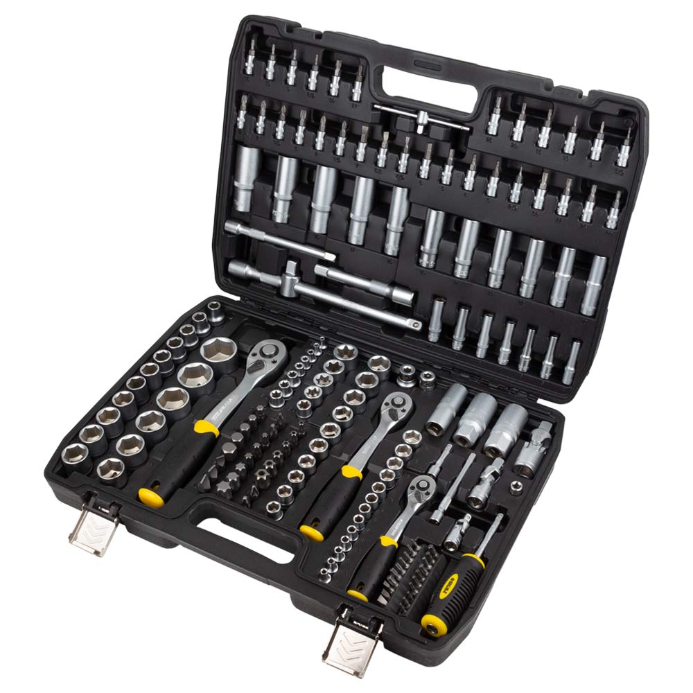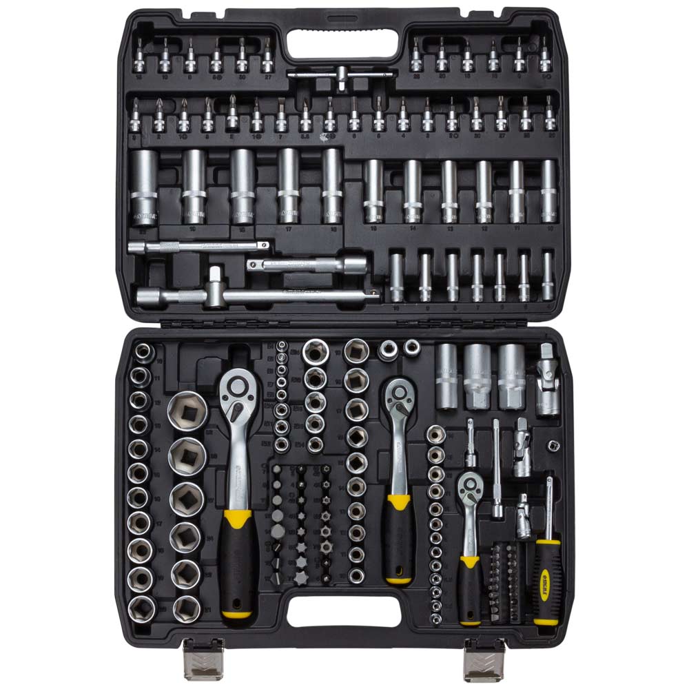 Набор головок торцевых и бит Sigma CrV 1/4", 3/8", 1/2" 171 шт - это профессиональная подборка инструмента, разработанная для манипуляций с резьбовыми соединениями во время технического обслуживания транспортных средств. Данная комплектация является незаменимым помощником в столярно-слесарном деле, обеспечивая максимальную эффективность как в мастерской, так и в бытовых условиях.