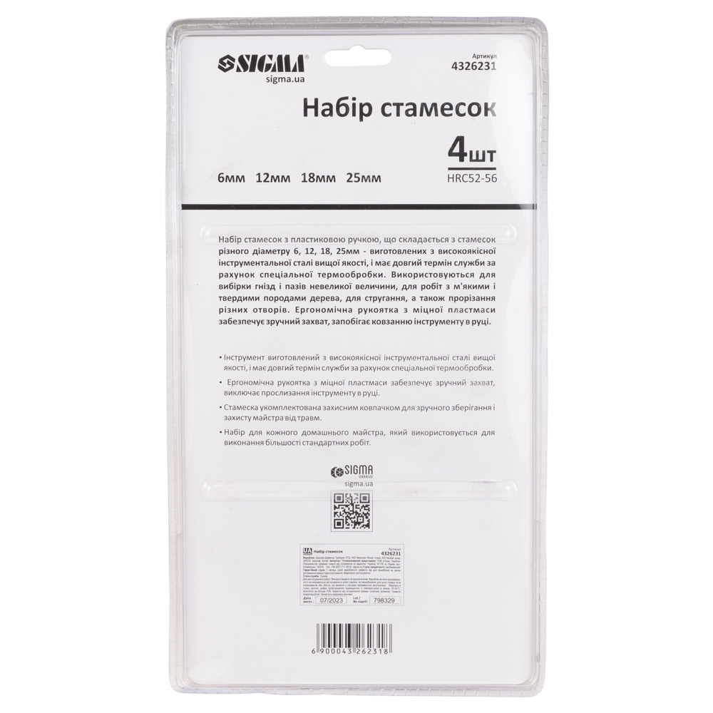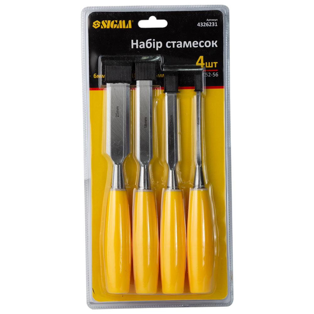 Набор стамесок Sigma 4 шт (6, 12, 18, 25 мм) пластиковая ручка - это универсальный инструментальный комплект, предназначенный для выполнения большинства стандартных столярных работ, от выборки пазов и гнезд до строгания и прорезания отверстий. Ключевой особенностью этой подборки является наличие четырех самых востребованных размеров, что делает ее идеальным стартовым выбором для любого домашнего мастера. Лезвия из высококачественной инструментальной стали прошли специальную термообработку для долгого срока службы, а эргономичные рукоятки из ударопрочной пластмассы обеспечивают удобный захват и исключают проскальзывание.