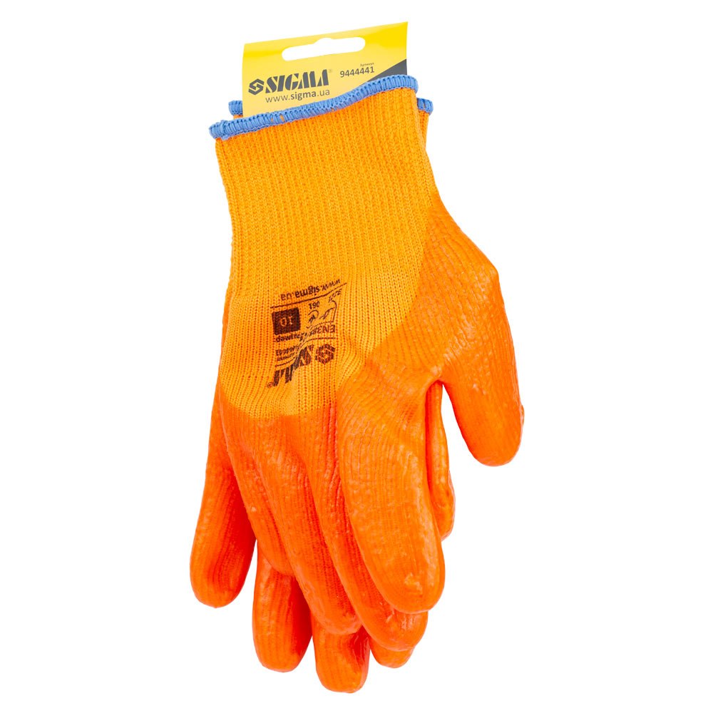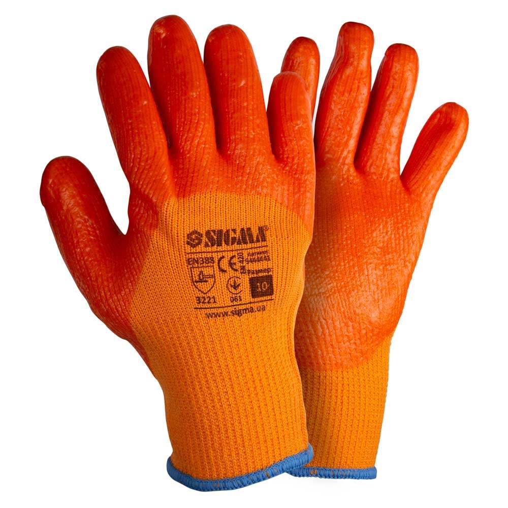 Перчатки Sigma трикотажные с частичным ПВХ покрытием утепленные р10 (оранж, манжет)