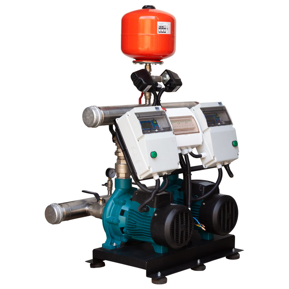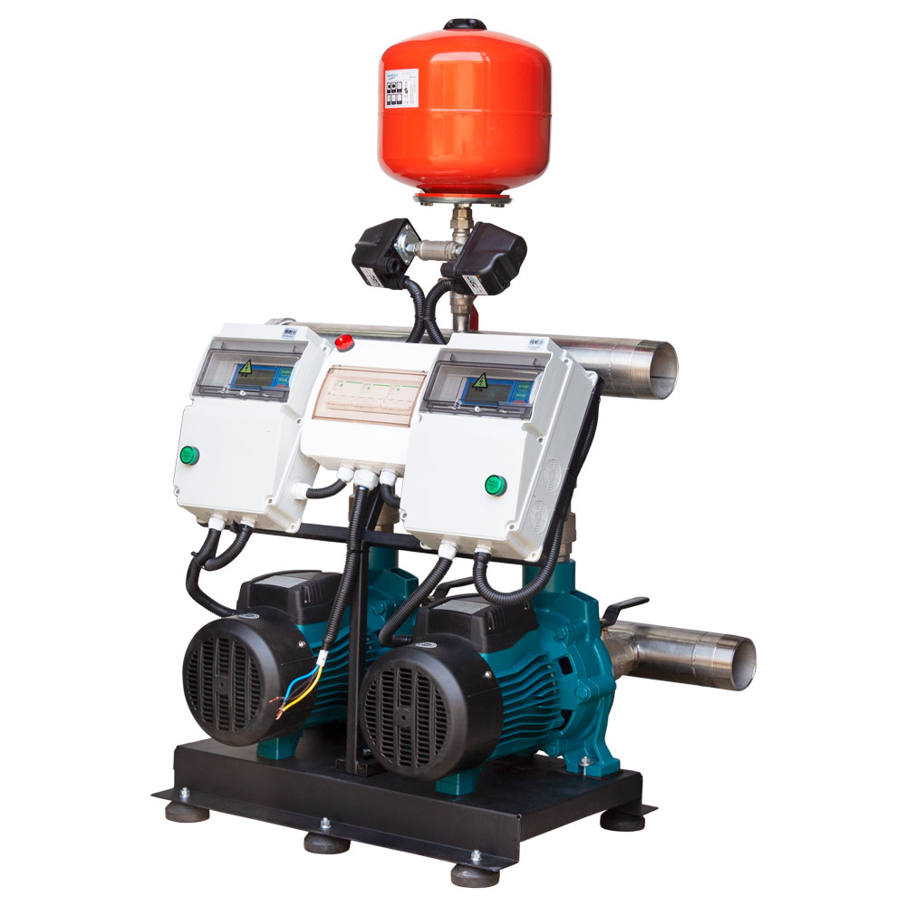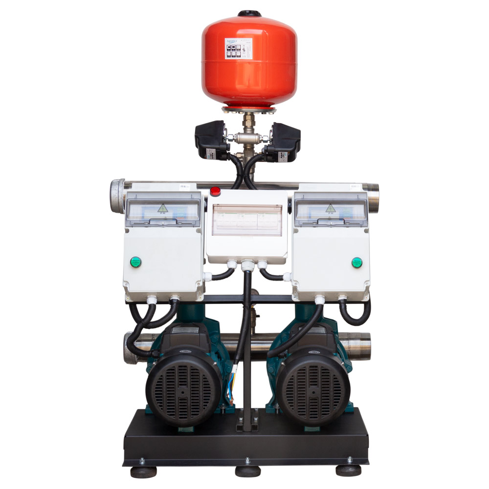 Станция Leo повышения давления 380В 2 x 3.0кВт Hmax 38 м Qmax 450 л/мин 12 л + каскадное управление 3.0