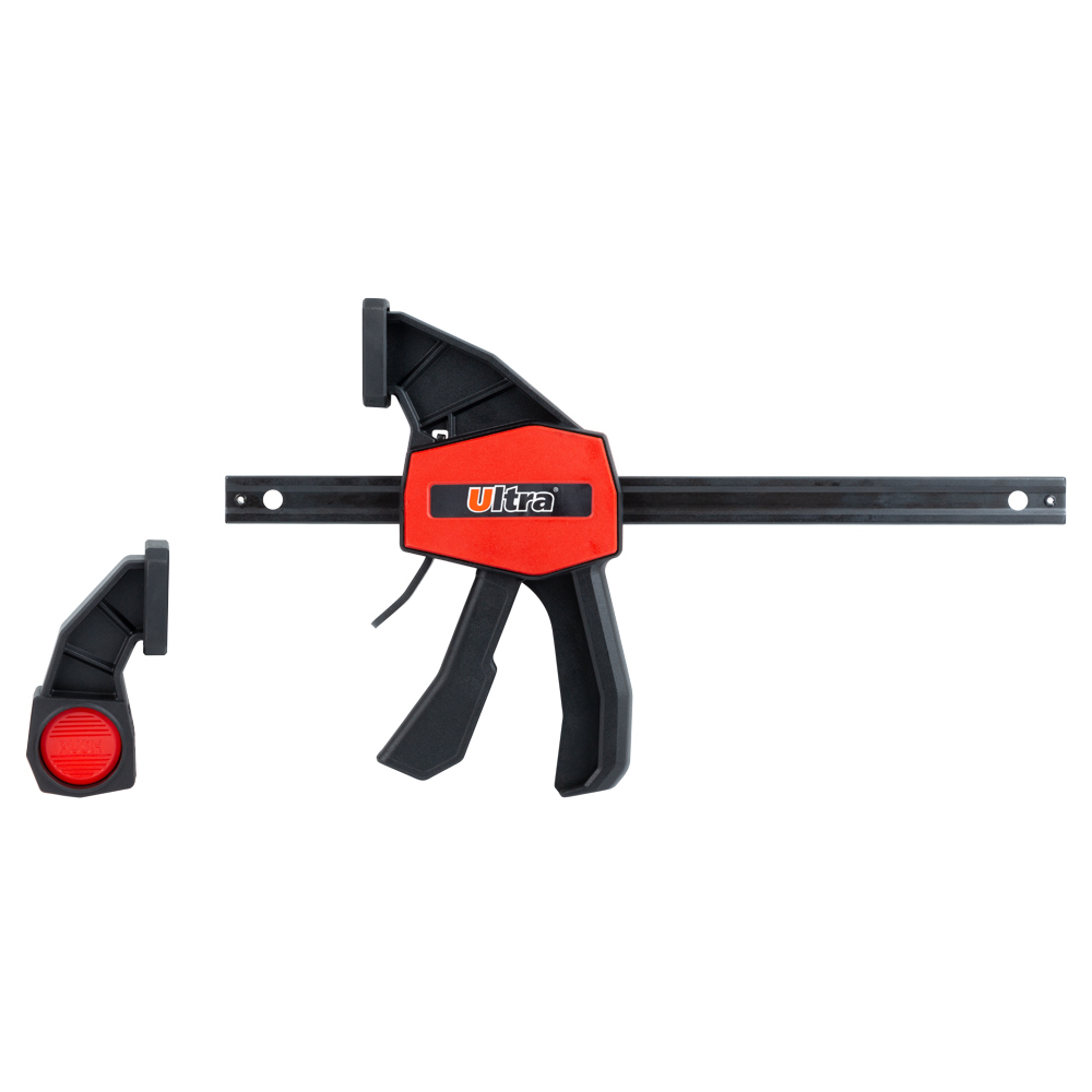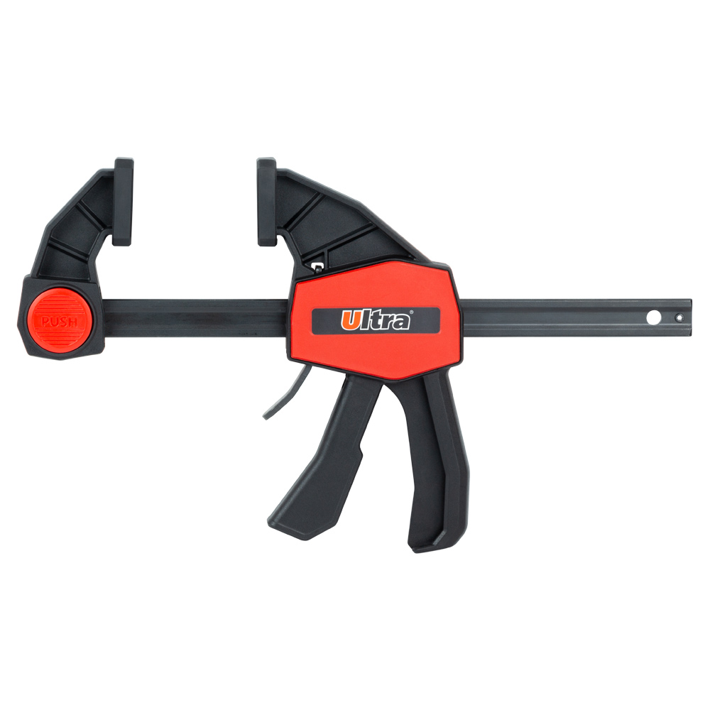 Струбцина быстрозажимная Ultra 150 х 60 мм усиленная - это компактный и мощный инструмент, предназначенный для быстрой и надежной фиксации небольших заготовок при выполнении точных сборочных и столярных работ. Ключевой особенностью этой модели является ее реверсивная конструкция, которая позволяет одним нажатием кнопки переставлять губки со сжатия на распор. Усиленная направляющая и удобное управление одной рукой делают этот инструмент незаменимым для работы в стесненных условиях.