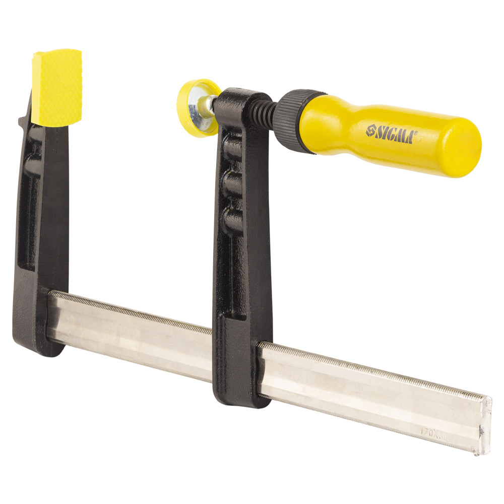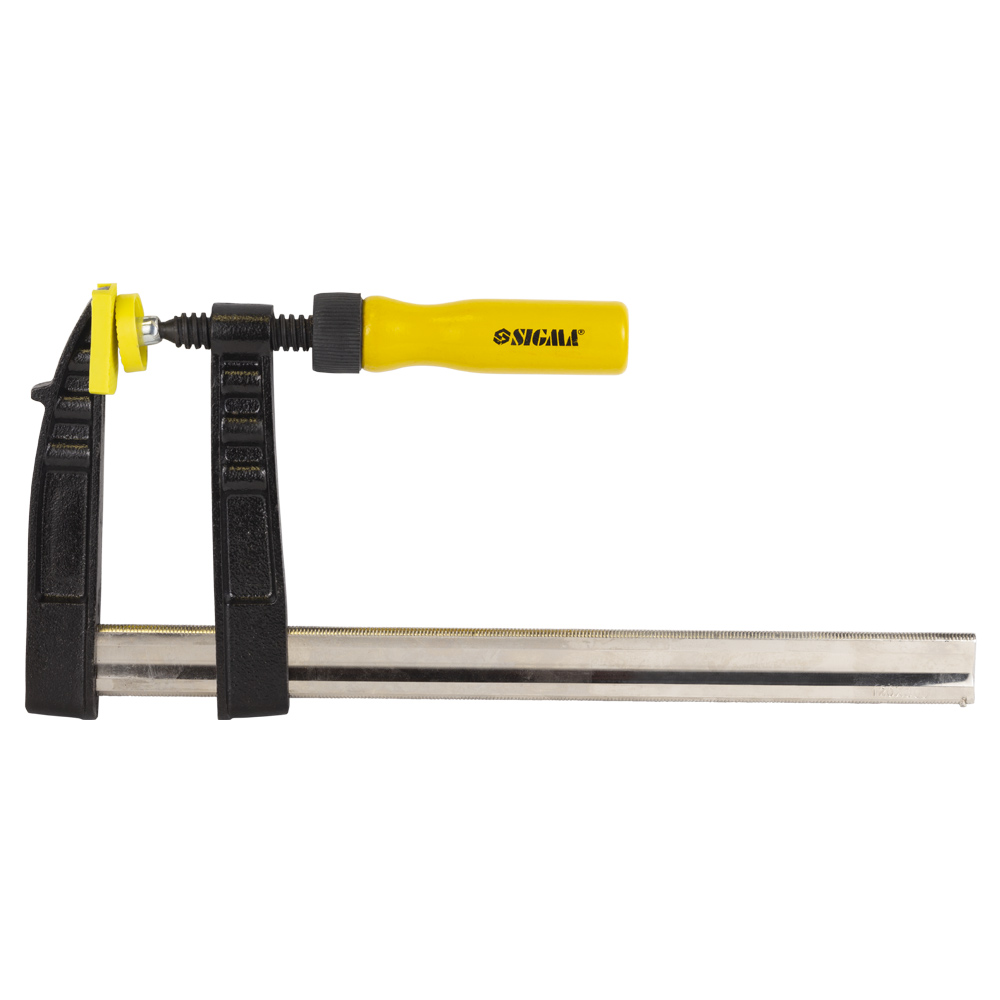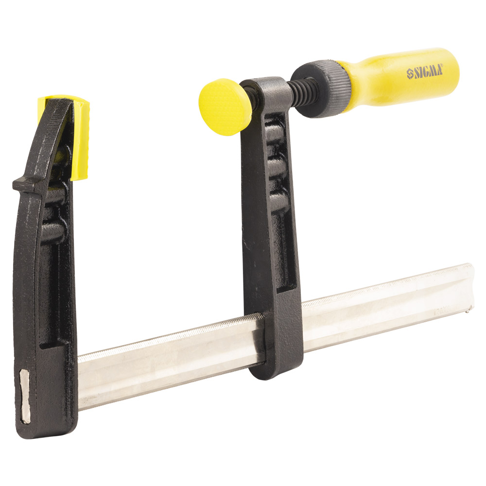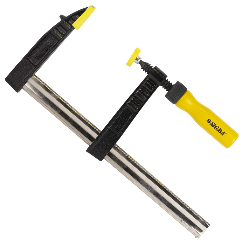 Струбцина столярная Sigma тип F 300 х 120 мм DIN 5117 - это мощный и универсальный инструмент, предназначенный для фиксации широких заготовок и деталей. Ключевой особенностью этой модели является ее увеличенная глубина зажима (120 мм), которая позволяет надежно фиксировать широкие доски, столешницы и другие габаритные элементы, недоступные для стандартных моделей. Высокопрочная инструментальная сталь и шпиндель с трапециевидной резьбой обеспечивают мощный и надежный зажим.
