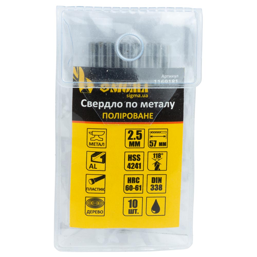 Сверло по металлу Sigma HSS полированное Ø2,5 мм (pvc, кратно 10шт) предназначено для получения сквозных и глухих отверстий в заготовках в режиме прерывистого резания. Оснастка эффективно справляется с обработкой легких металлов, стали и алюминия, а также подходит для работы с пластиком и древесиной при невысоких нагрузках.