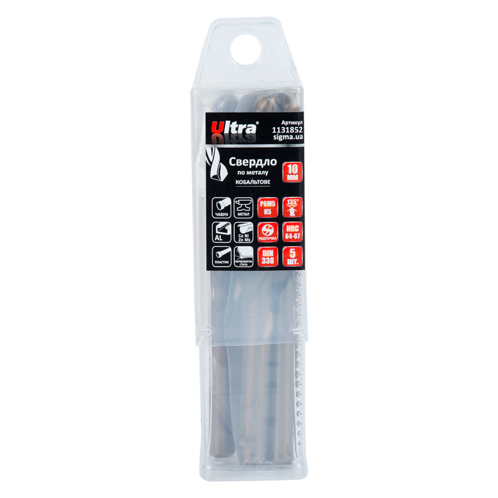 Сверло по металлу Ultra Р6М5К5 кобальтовое Ø10.0 мм (тубус КРАТНО 5 шт) – это монолитный инструмент повышенной прочности, созданный для работы с мощным оборудованием. Цельный 10-миллиметровый хвостовик обеспечивает максимальную передачу крутящего момента и устойчивость к излому при сверлении толстостенного металла, в том числе жаропрочных сталей.