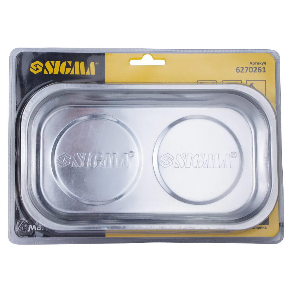 Тарелка Sigma магнитная двойная 136 х 237 мм — это удобный аксессуар для организации рабочего пространства, предназначенный для надежного удержания мелких металлических деталей, таких как болты, гайки, шайбы и саморезы. Благодаря двойной конструкции и мощным магнитам, это изделие обеспечивает эффективное хранение крепежа, предотвращая его потерю во время ремонтных или сборочных работ.