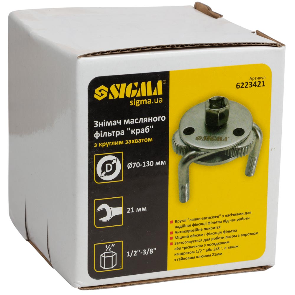Съемник масляного фильтра Sigma "краб" Ø70-130 мм с круглым захватом и переходником 1/2"-3/8"