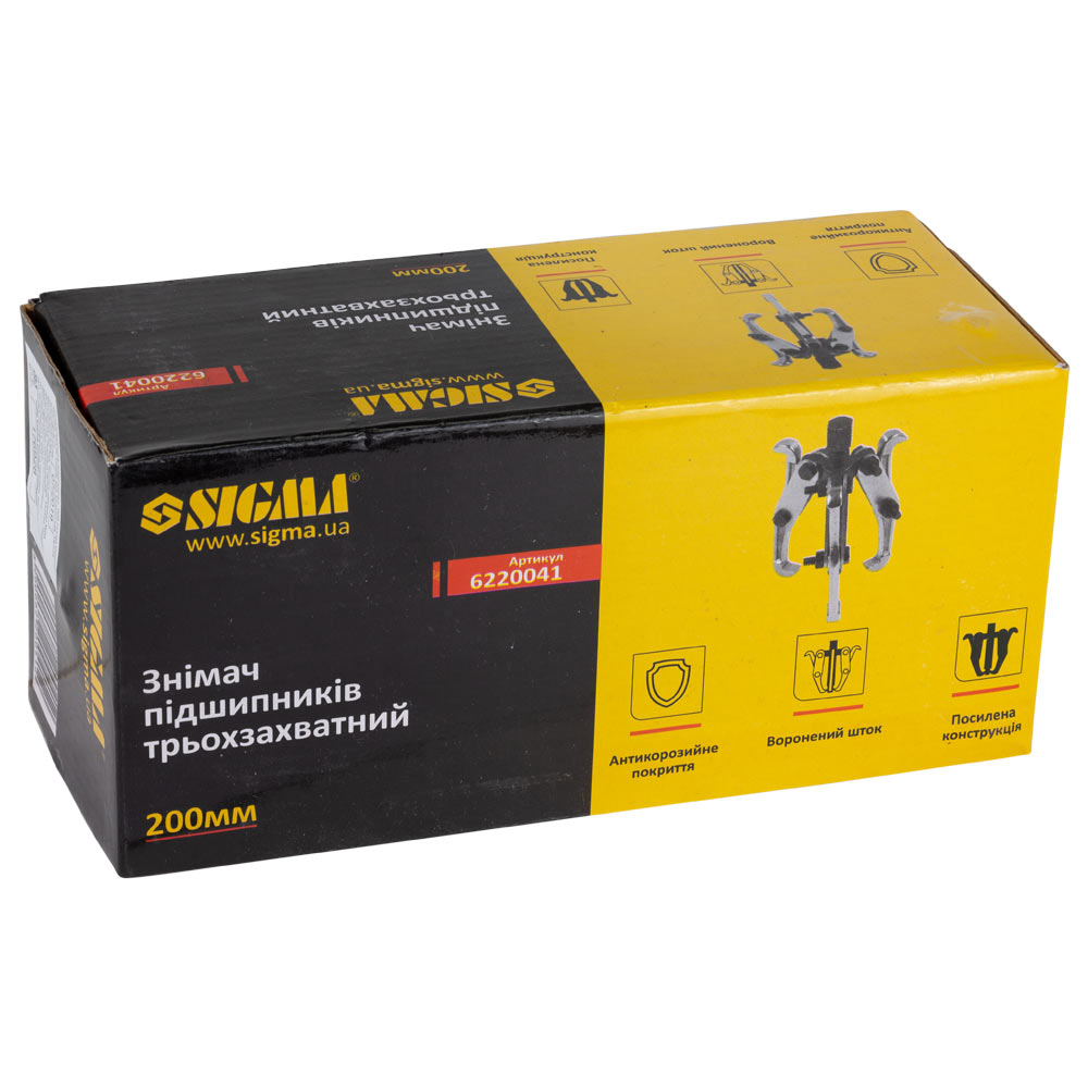 Съёмник подшипников Sigma трёхзахватный 200 мм — это профессиональный ручной инструмент, предназначенный для безопасного и эффективного демонтажа подшипников, шестерен, шкивов и других деталей, плотно сидящих на валу или в корпусе. Данная модель отличается надежной трехзахватной конструкцией, обеспечивающей равномерное распределение нагрузки и предотвращающей повреждение извлекаемых элементов. Инструмент идеально подходит для использования в автомастерских, промышленных цехах, а также для ремонтных работ в быту.