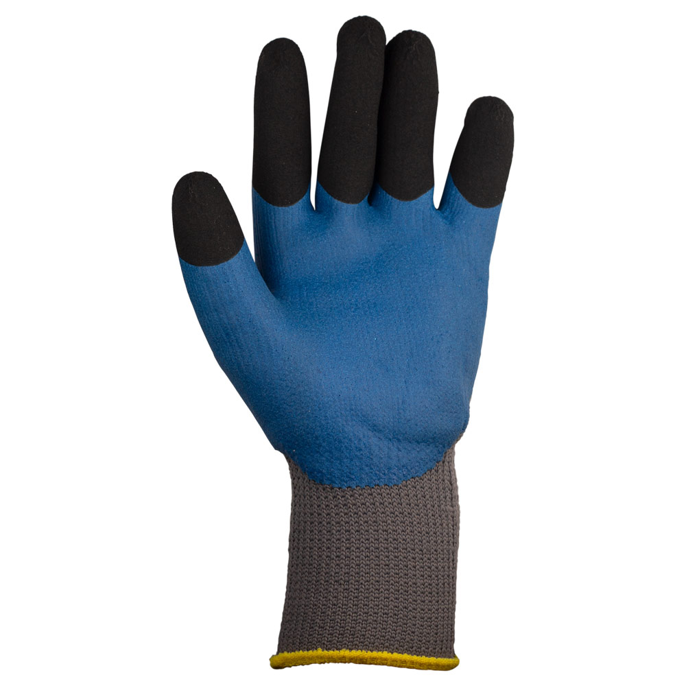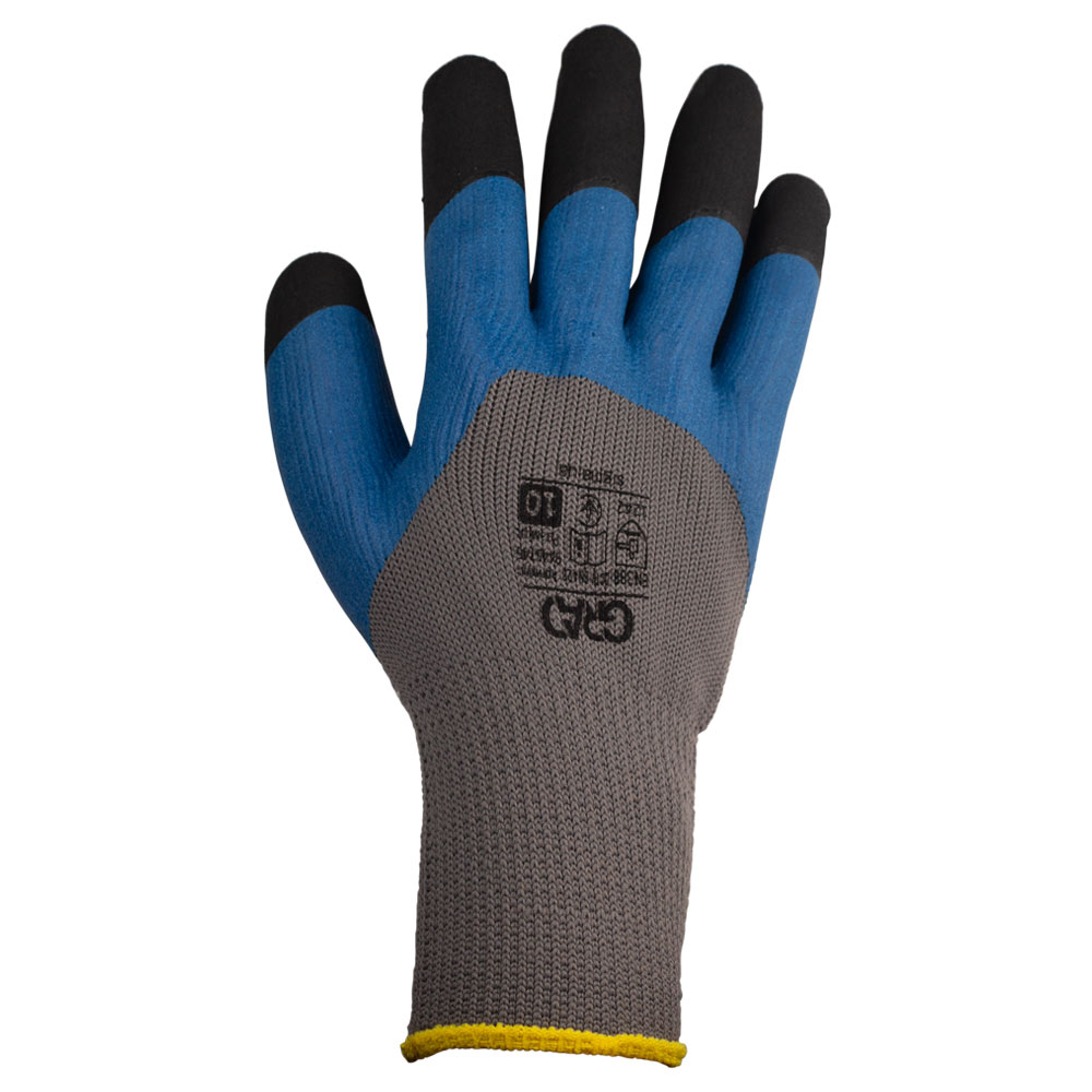 Рукавички Grad трикотажні з частковим латексним спіненим покриттям утеплені р10 (синій манжет) КРАТНО 12 парам - це високоефективний засіб захисту, призначений для комфортної роботи в умовах холоду та вологості. Ключовою особливістю даної моделі є "дихаюче" спінене латексне покриття, яке забезпечує чудове сухе та вологе захоплення, не знижуючи тактильної чутливості. Утеплена махрова підкладка цього виробу зберігає тепло рук, а еластичний манжет щільно прилягає до зап'ястя, що робить їх незамінним рішенням для тривалих ремонтно-будівельних та сільськогосподарських робіт.