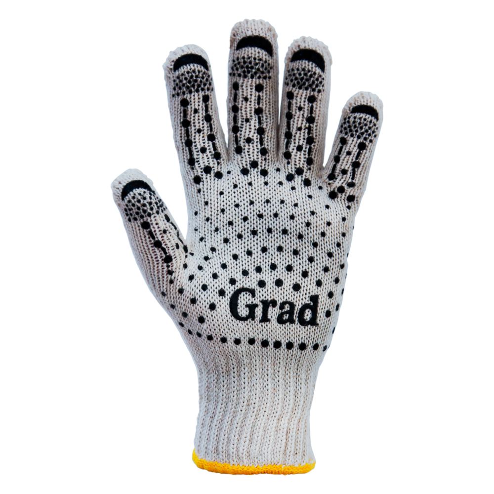 Рукавички Grad трикотажні з точковим ПВХ покриттям р10 (білі) КРАТНО 12 парам - це професійний засіб захисту рук, створений для робіт, що вимагають надійного хвату та захисту від механічних впливів. Ключовою особливістю цієї моделі є точковий ПВХ протектор на долоні, що дозволяє з високою точністю забезпечувати надійне зчеплення з гладкими та слизькими поверхнями. Бавовняна основа цього виробу гарантує комфорт і вбирає вологу, а трикотажний манжет забезпечує ідеальну фіксацію, що робить їх незамінним помічником для професіоналів у різних сферах.