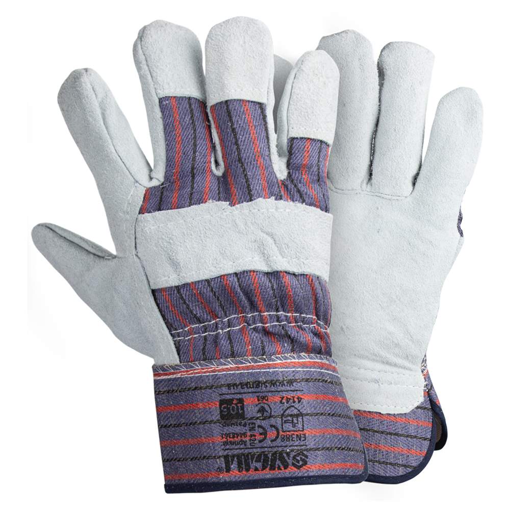Конструкція робочої зони: цільна замшева долоня без зайвих швів запобігає натиранню рук і відмінно пручається грубому тертю об будівельні матеріали (цеглу, дошки, арматуру).