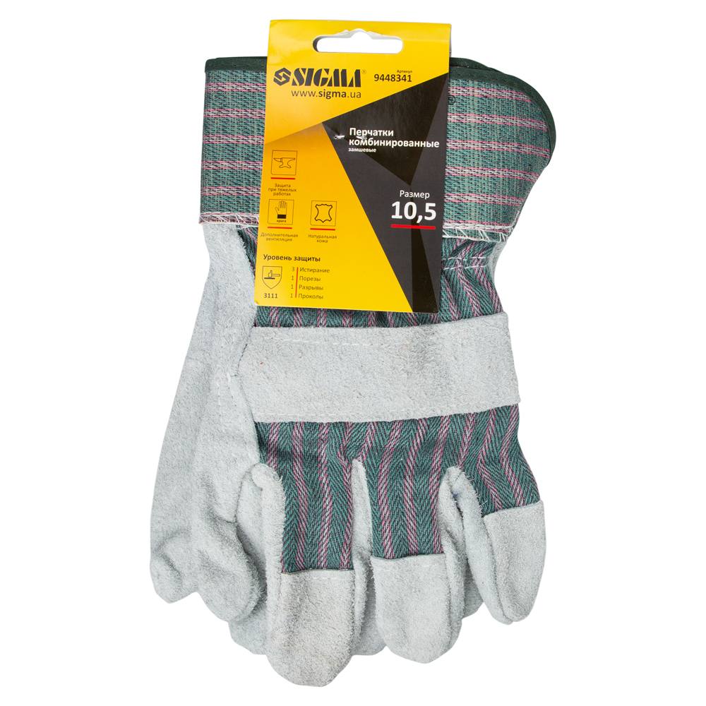 Рукавички Sigma комбіновані замшеві р10.5, клас АВ (цільна долонь)