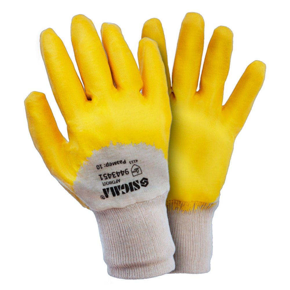 Рукавички Sigma трикотажні з нітриловим покриттям р10 (жовті) 120 пар