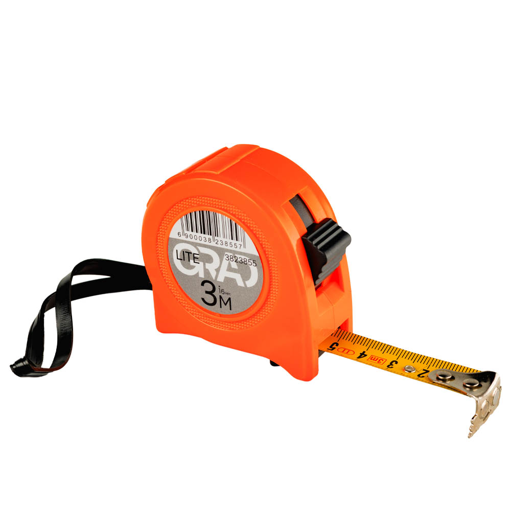 Рулетка Grad Lite магнітна з фіксатором 3 м х 16 мм - це портативний вимірювальний прилад, що ідеально підходить для точних замірів у найрізноманітніших сферах. Її обгумований корпус виконаний з ударостійкого ABS-пластику, що гарантує захист від пошкоджень та зручність утримання. Ключовою особливістю є стійке металеве полотно шириною 16 мм з чіткою метричною шкалою. Магнітний зачіп надійно фіксується на металевих поверхнях, знижуючи ризик зісковзування стрічки, а додаткова кнопка блокування дозволяє зручно фіксувати полотно в будь-якому положенні. Для комфортного носіння передбачені кріплення на пояс та прогумований ремінець на руку. Клас точності вимірювання MID II гарантує високу достовірність показань.