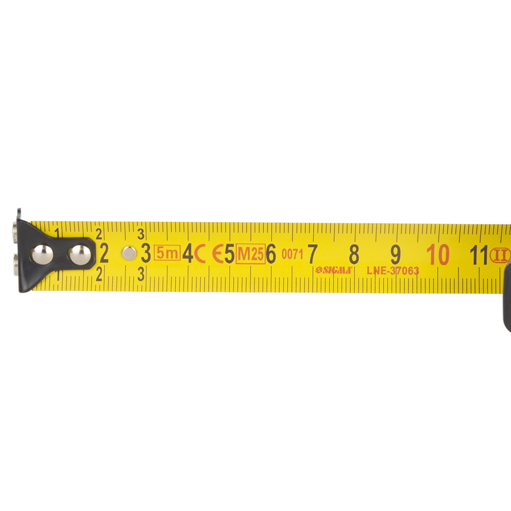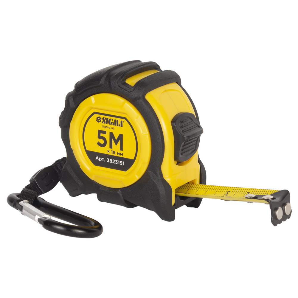 Рулетка Sigma Advanced магнітна обгумована нейлонове покриття 5 м х 19 мм - це високоточний та ергономічний вимірювальний прилад, створений для виконання повсякденних завдань у будівництві та ремонті. Корпус інструменту виконаний з ударостійкого ABS пластику та має гумове TPR покриття, яке забезпечує надійний хват, запобігає вислизанню з рук та служить амортизатором при падіннях. Ключовою особливістю є сталеве металеве полотно шириною 19 мм з нейлоновим покриттям, яке демонструє високу зносостійкість, стійкість до вигинів та ударів, а також захищено від корозії. Магнітний зачіп значно полегшує роботу з металевими конструкціями, а клас точності вимірювання II гарантує достовірність показань.