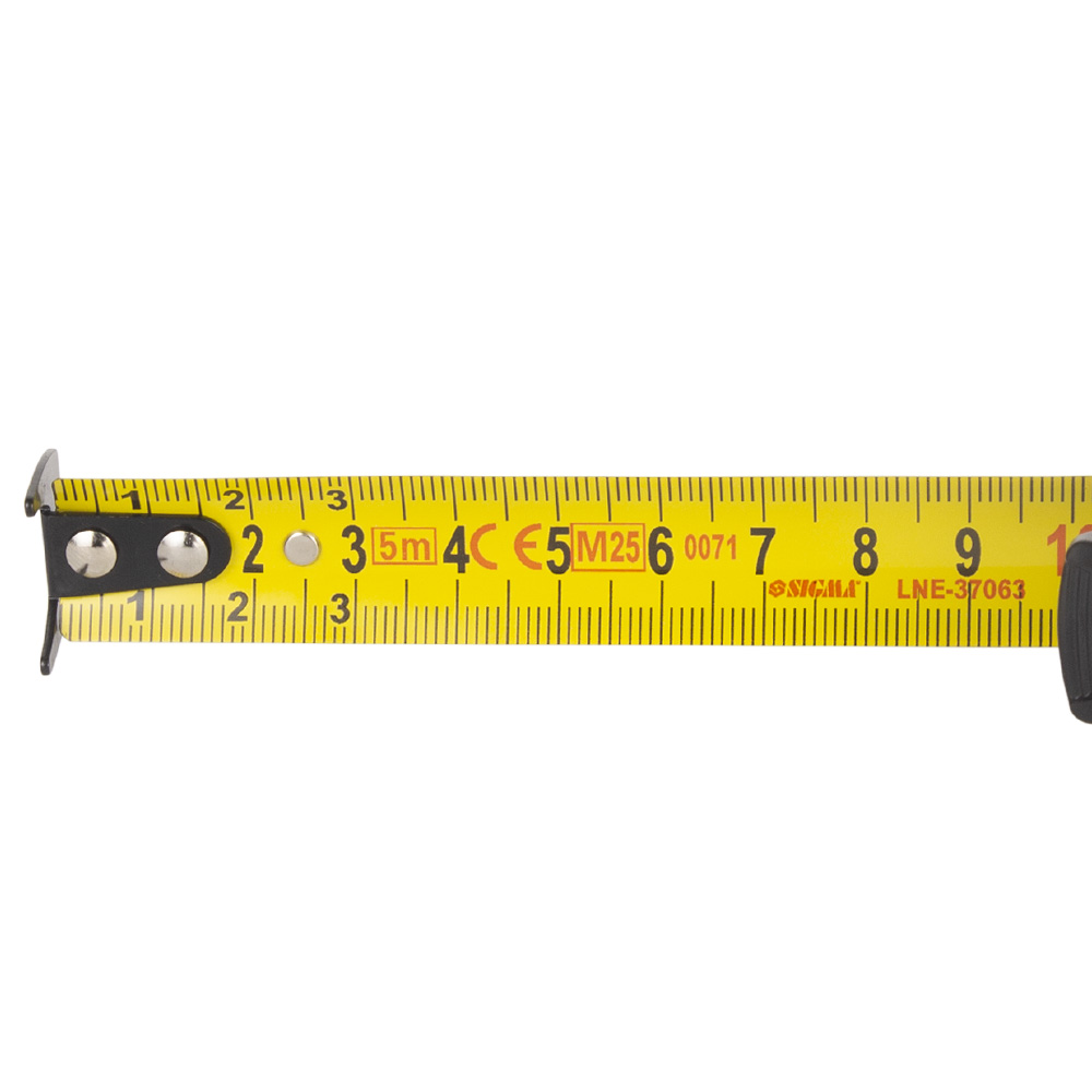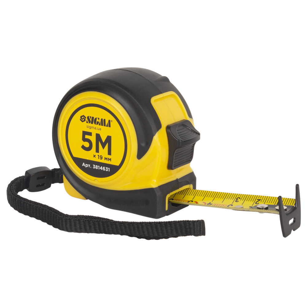 Рулетка Sigma Compact обгумована двостороннє полотно/зачіп 5 м х 19 мм - це універсальний вимірювальний прилад для будівельних та ремонтних робіт, що поєднує міцність та зручність. Корпус інструменту виготовлений з ударостійкого ABS пластику та покритий гумовим TPR шаром, що забезпечує надійний хват, запобігає ковзанню в руці та служить демпфером при падіннях. Ключовою особливістю є двостороння метрична шкала на полотні шириною 19 мм та посилений зачіп, що дозволяє проводити заміри в різних положеннях та важкодоступних місцях. Зручне кріплення на пояс та ремінь на руку робить її незамінним супутником на будь-якому будівельному майданчику.
