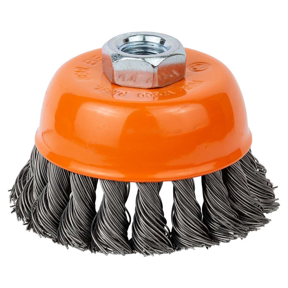 Щітка дротяна Grad чашоподібна Ø85 мм М14 х 2 мм (сталева кручена) – це оснащення з підвищеною продуктивністю для КШМ, призначене для швидкого силового зачищення листового металу та зварних швів. Збільшений діаметр та жорсткий кручений дріт дозволяють ефективніше очищувати поверхні від окалини та товстих шарів фарби.