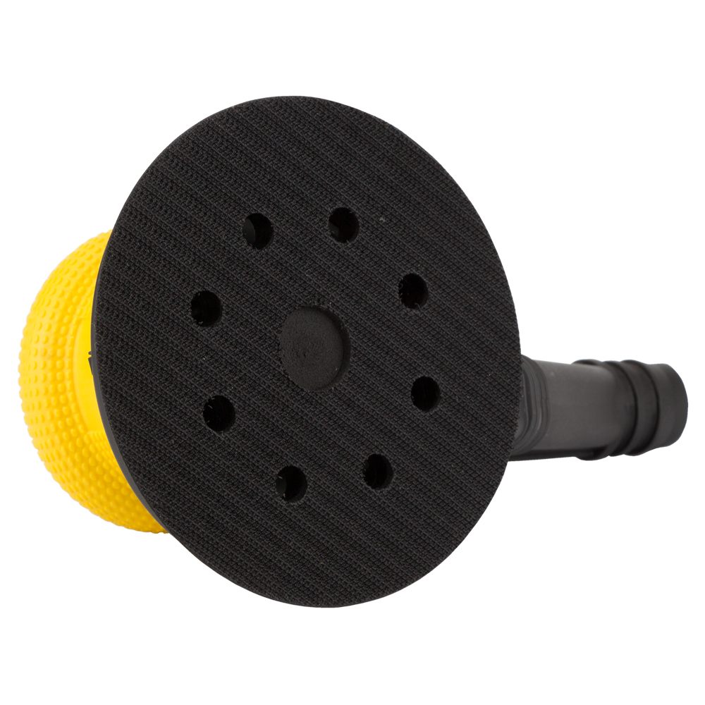 - Швидка заміна оснащення: підошва діаметром 125 мм має покриття типу "липучка", завдяки чому зміна шліфувальних кругів займає лічені секунди.