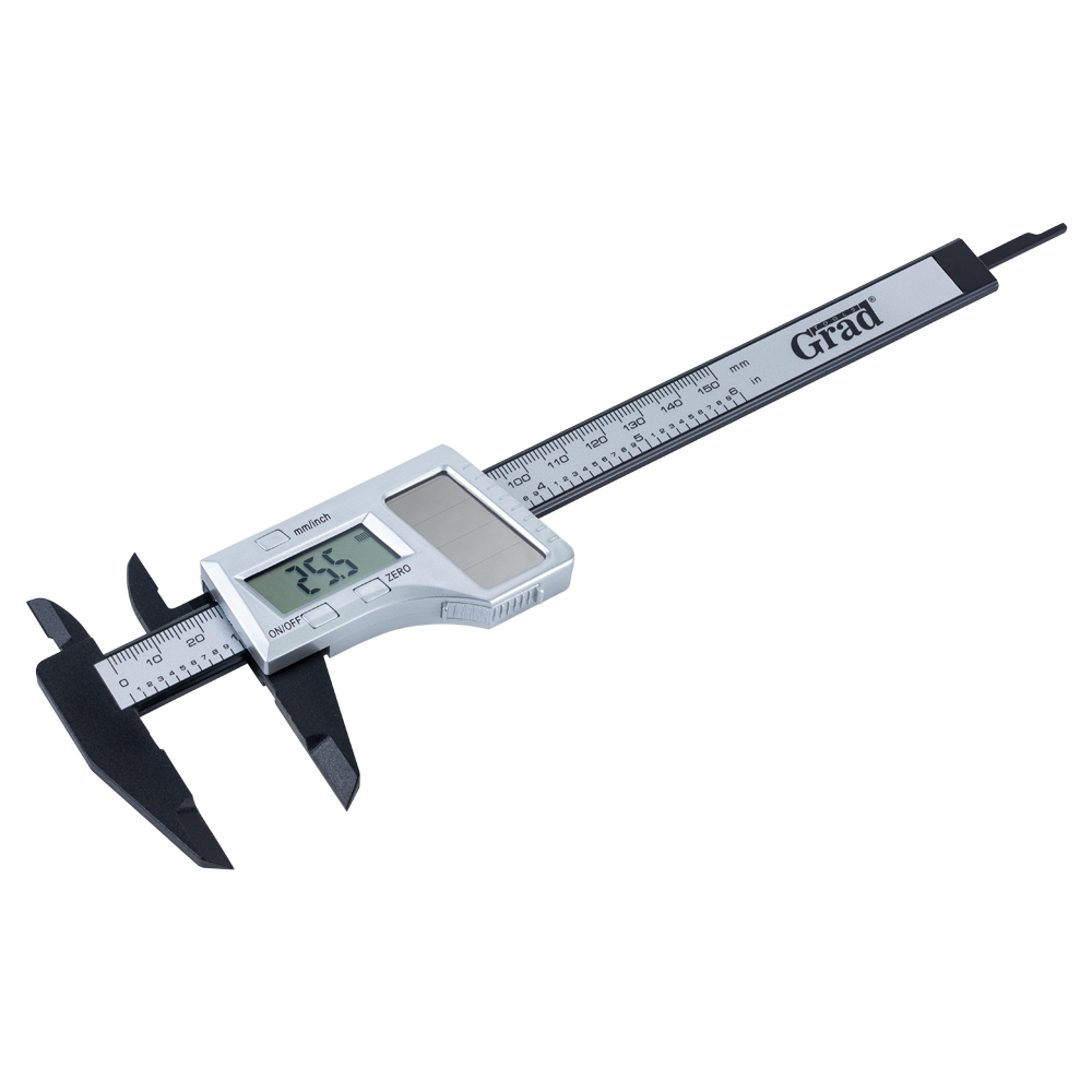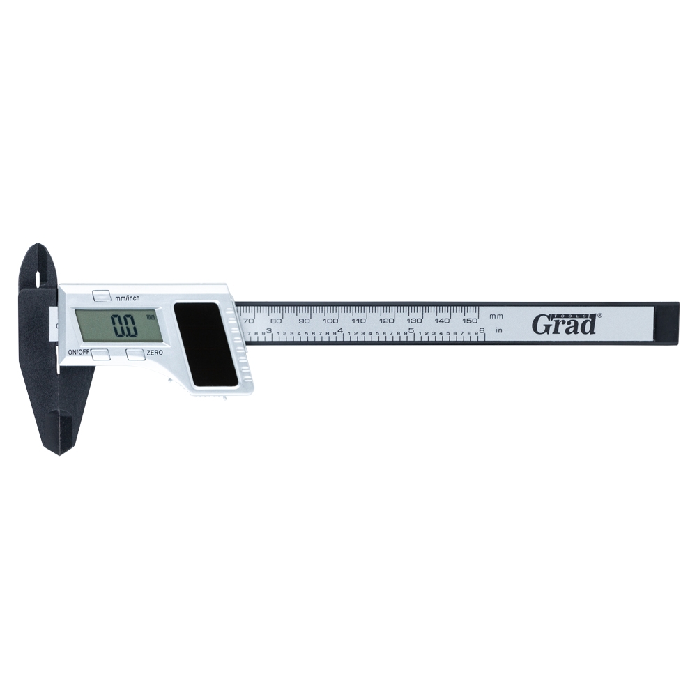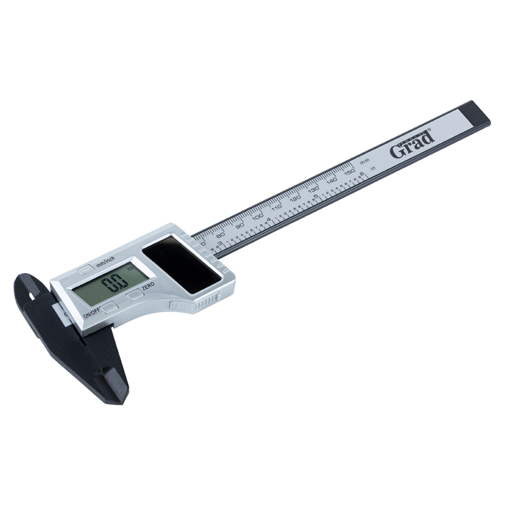 Штангенциркуль Grad цифровий на сонячній батареї 150 мм точність ±0.2 мм - це універсальний вимірювальний прилад, створений для визначення лінійних розмірів деталей із встановленою точністю. Ключовою особливістю цієї моделі є цифровий дисплей, який значно спрощує роботу для новачків, усуваючи необхідність в освоєнні механічного ноніуса, а корпус із композиту вуглецевого волокна (карбону) робить його міцнішим за сталь, але набагато легшим. Можливість проводити вимірювання зовнішніх і внутрішніх розмірів, а також глибини отворів за наявності висувної штанги, у поєднанні з двома джерелами живлення (від елемента CR2016 та сонячної панелі), робить цей механізм ідеальним для роботи з електронними компонентами, не побоюючись замикання, та запобігає появі подряпин на делікатних поверхнях.