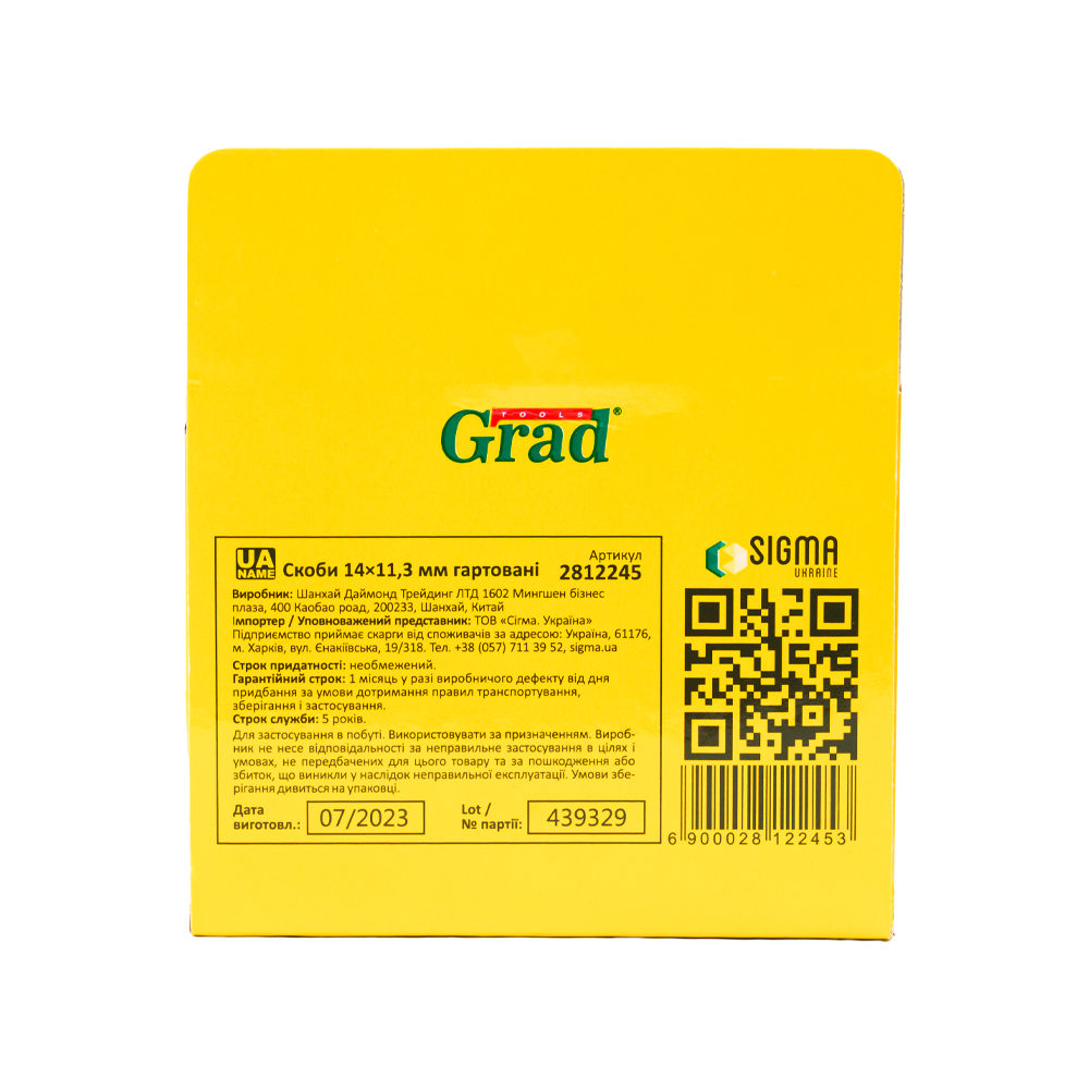 Скоби Grad 14 х 11.3 мм гартовані 1000 шт