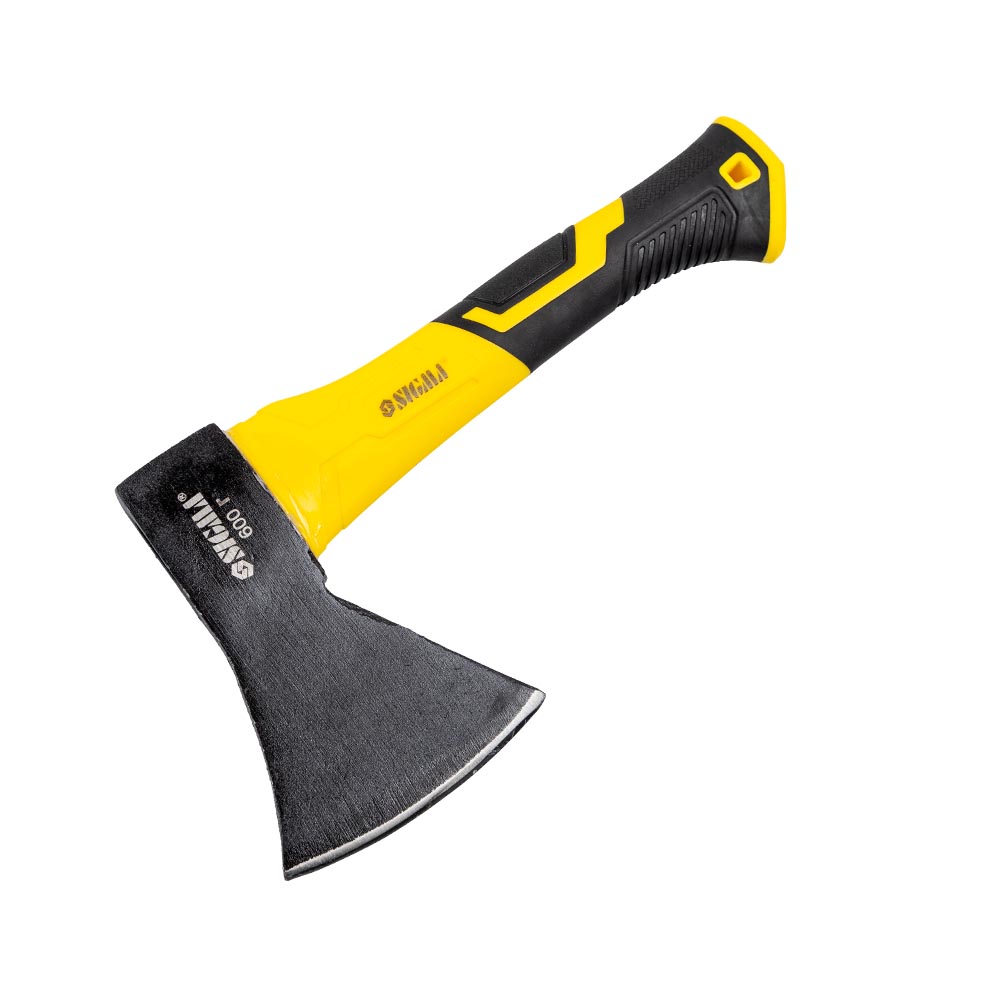 Сокира Sigma 500 г фібергласове руків'я - це легкий і компактний інструмент, що ідеально підходить для рубання дрібних гілок, тесання та розколювання невеликих полін деревини різних порід, що робить його незамінним у походах і на дачі. Ключовою особливістю цієї моделі є кована та загартована робоча частина з високоякісної інструментальної сталі, що забезпечує виняткову гостроту та зносостійкість леза. Міцне двокомпонентне руків'я зі скловолокна (фібергласу) з гумовим протиковзким покриттям надійно гасить вібрації при ударі, не схильне до гниття, усихання і стійке до агресивних хімічних речовин, таких як масла і бензин.