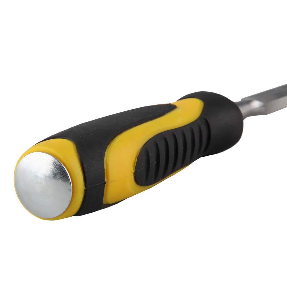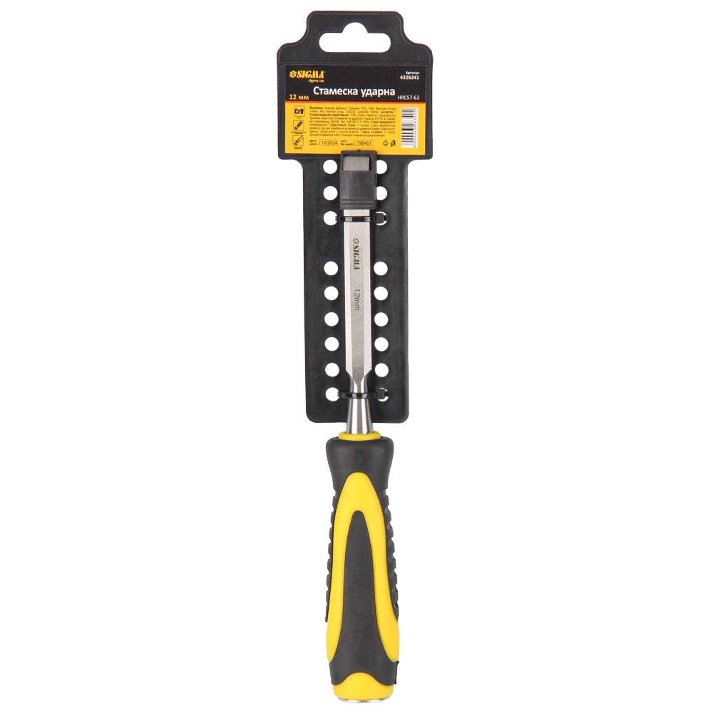 Стамеска ударна Sigma CrV 12 мм двокомпонентна ручка - це надійний та довговічний столярний інструмент, що ідеально підходить для вирізання отворів, вибірки пазів та гнізд у деревині різних порід. Головною перевагою даної моделі є полотно з високоякісної хромованадієвої сталі (CrV), яке відрізняється високою міцністю та стійкістю до зносу. Двокомпонентне ударне руків'я ергономічної форми не тільки забезпечує комфортне захоплення та запобігає прослизанню, але й ефективно передає енергію удару від киянки, роблячи роботу більш продуктивною та менш стомлюючою.
