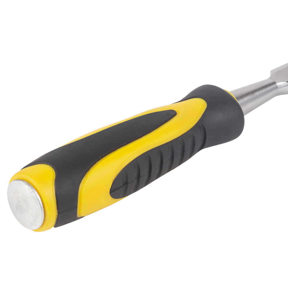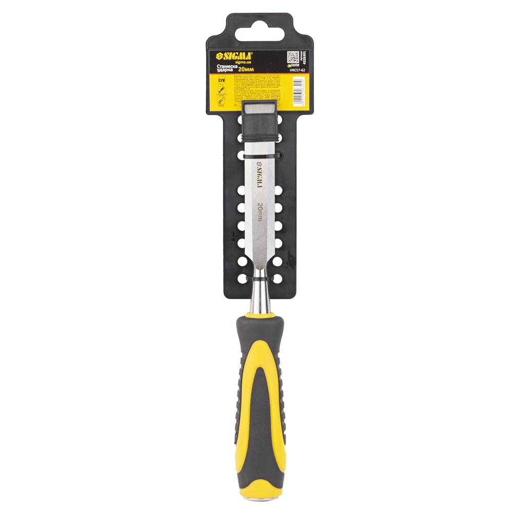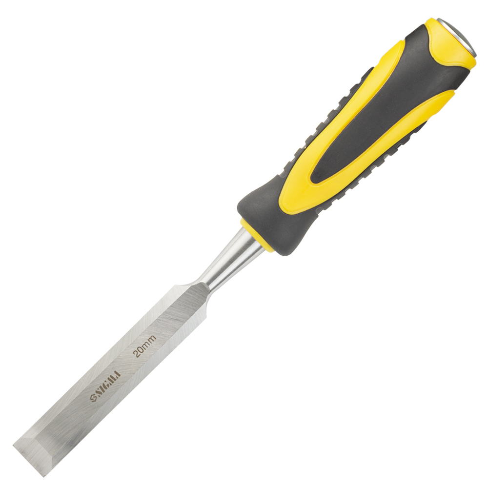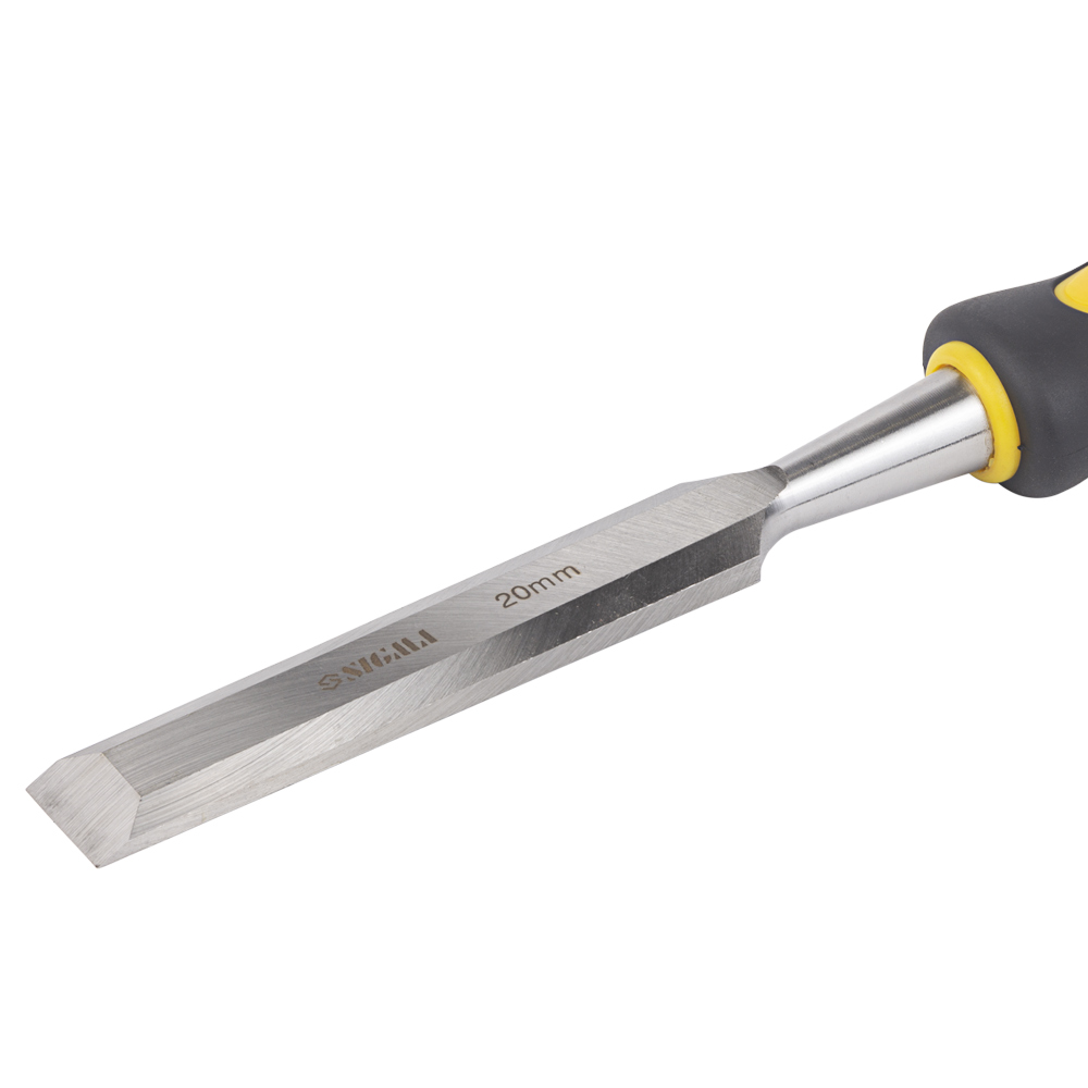 Стамеска ударна Sigma CrV 20 мм двокомпонентна ручка - це потужний та продуктивний інструмент для столярних робіт, який легко справляється з вибіркою пазів та вирізанням отворів у деревині будь-якої твердості. Ключовою перевагою є широке полотно (20 мм) з міцної хромованадієвої сталі, яке дозволяє швидко знімати великий обсяг матеріалу. Двокомпонентне ударне руків'я ергономічної форми не тільки зручно лежить у руці, але й ефективно поглинає вібрацію, забезпечуючи комфорт та контроль при роботі з киянкою.