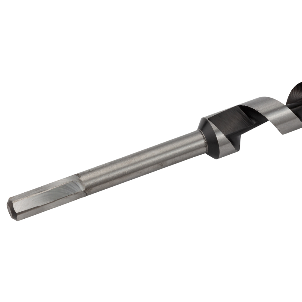 Ріжуча частина: конусний наконечник з агресивною різьбою бере на себе все навантаження по подачі, дозволяючи оснащенню плавно врізатися в масив без зайвих зусиль з боку користувача.