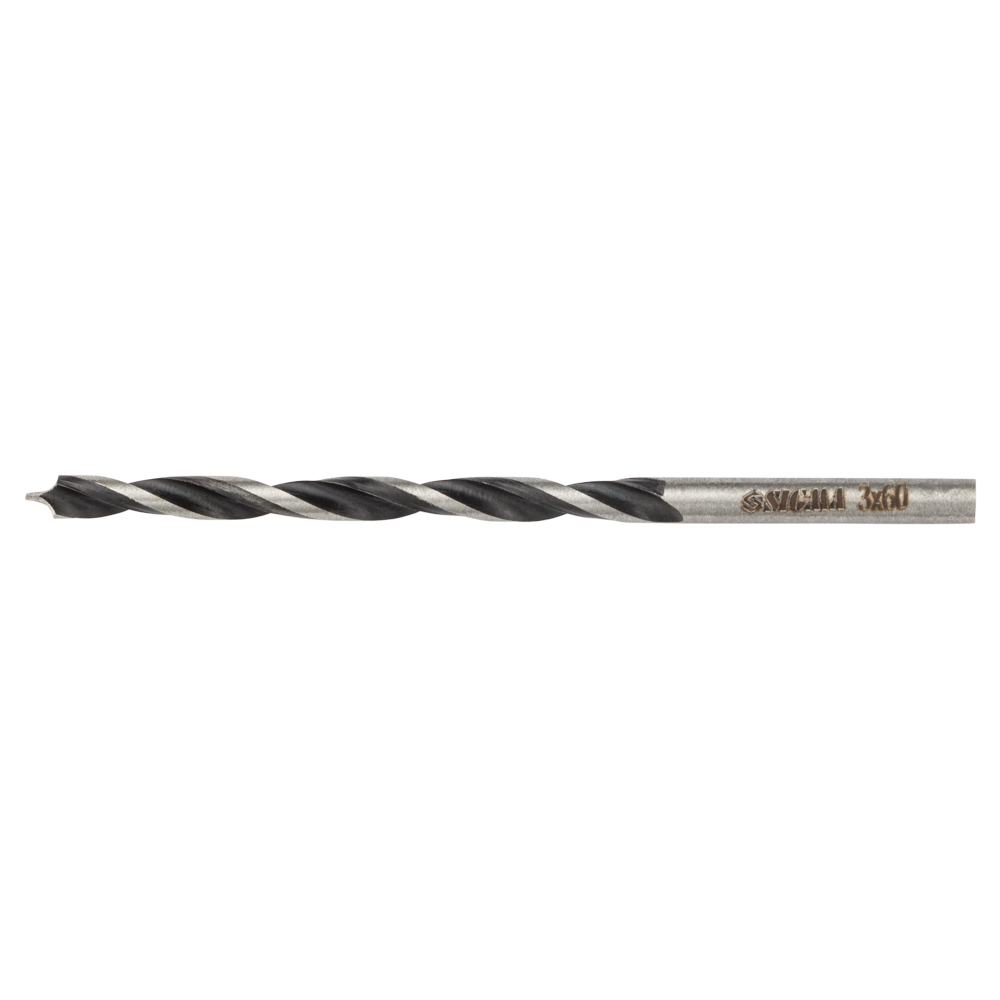 Свердло по дереву Sigma спіральне триточкове Ø3 х 60 мм - це високоефективний інструмент, призначений для чистового свердління отворів малого діаметра в таких матеріалах, як деревина, фанера, ДСП, клеєна деревина та пластик. Завдяки особливій конструкції, воно забезпечує швидке та точне виконання робіт як вздовж, так і впоперек волокон.