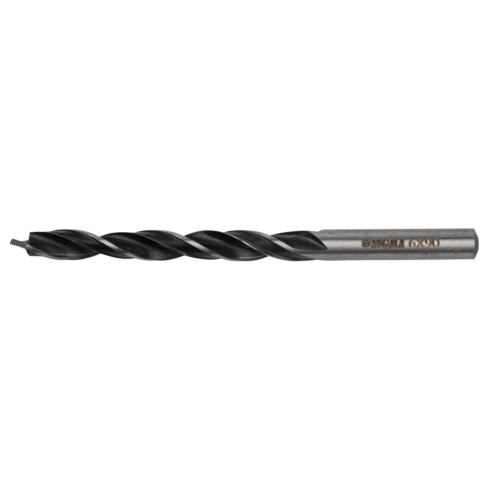 Свердло по дереву Sigma спіральне триточкове Ø6 x 90 мм - цей інструмент призначений для створення отворів невеликого та середнього діаметра у масиві деревини, фанері, ДСП, клеєних щитах та пластику. Завдяки подовженому центруючому вістрю з конусним центром та бічним підрізувачам, модель забезпечує високу точність та швидкість роботи як уздовж, так і поперек волокон.