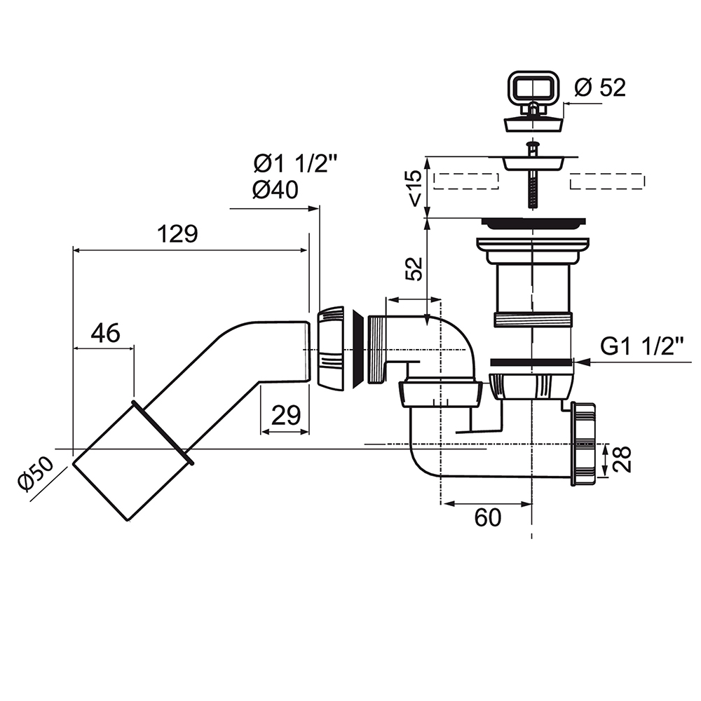- Герметичність: жорстке відведення Ø40/50 мм забезпечує міцне та герметичне з'єднання з каналізаційною системою.