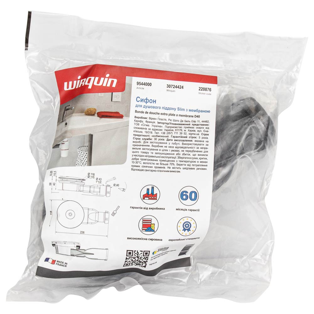 Сифон для душового піддону Wirquin Slim Ø90 мм із мембраною Ø40/43 мм