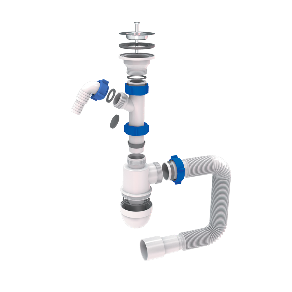 - Встановлення: розмістіть випуск з нержавіючої сталі в отворі раковини, забезпечивши щільне прилягання ущільнювальних елементів.