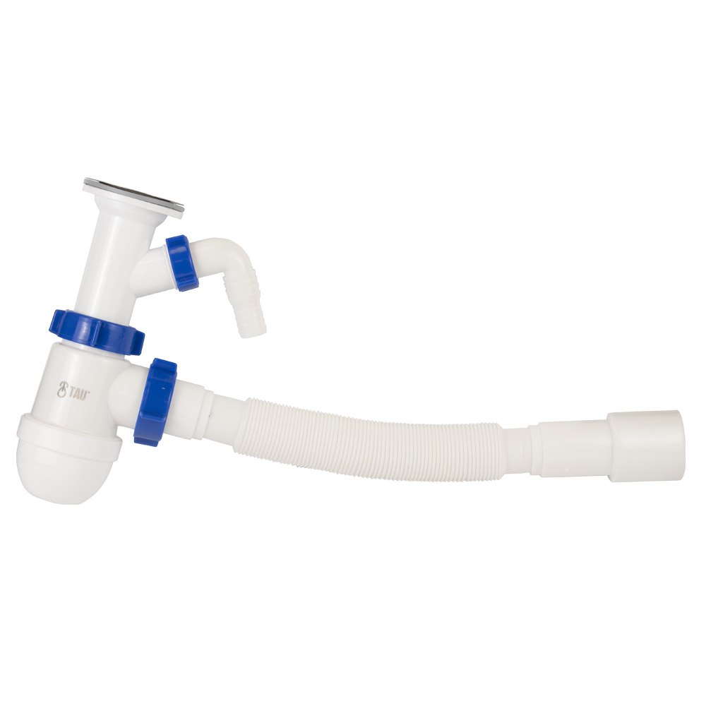 Сифон для раковини Tau з випуском з нержавіючої сталі з виведенням під пральну машину і гнучким відведенням 1½"ר40/50 мм