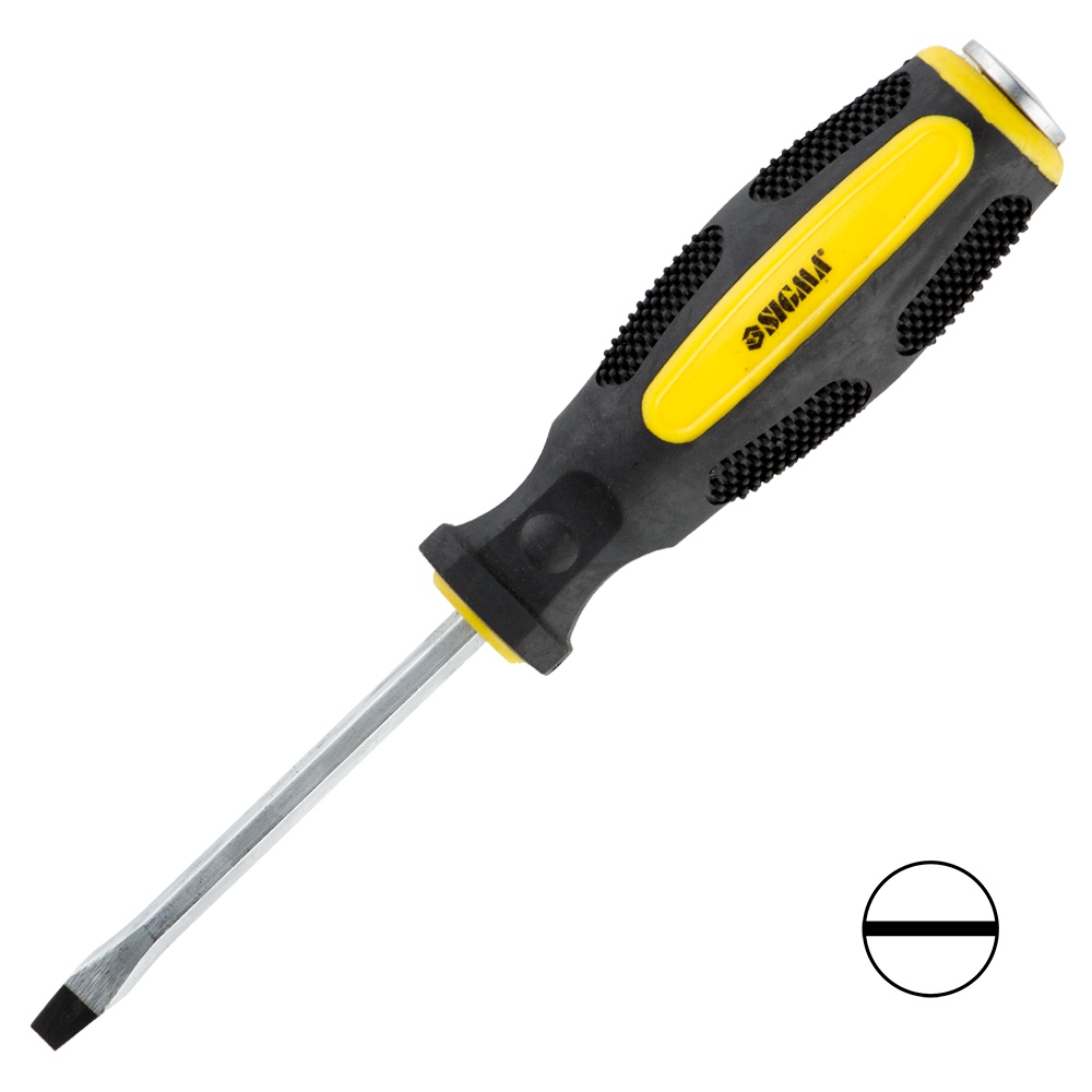 Викрутка ударна шліцьова Sigma CrV SL5 x 75 мм - це надійний інструмент, призначений для виконання складних робіт із нарізними з'єднаннями. На відміну від звичайних моделей, вона дозволяє ефективно відкручувати заіржавілі гвинти та шурупи завдяки можливості нанесення ударів по торцевій частині руків'я. Стрижень інструменту виготовлений із високоякісної хромванадієвої сталі, що гарантує стійкість до навантажень, а магнітний наконечник забезпечує зручне утримання кріплення. Ергономічна двокомпонентна протиковзка ручка дозволяє надійно фіксувати інструмент у долоні, забезпечуючи комфорт та безпеку під час експлуатації.