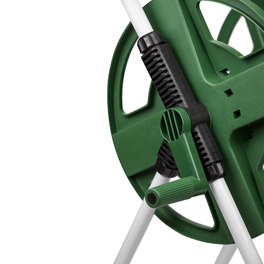 Візок для шланга Grad 30 м 1/2" - мобільне пристосування, розроблене для компактного розміщення та зручного транспортування садових ліній зрошення по земельній ділянці. Внутрішній рухомий механізм виключає ризик заломів гнучкого рукава під час його намотування або розмотування.