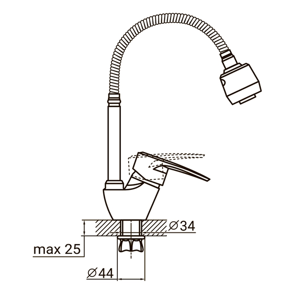 - Встановлення: помістіть кран в отвір мийки та надійно затягніть фіксуючу гайку-корону з нижнього боку.