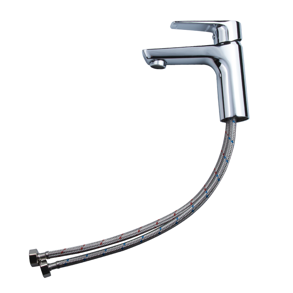- Установка: вкрутіть підводку та шпильку в основу, помістіть кран в отвір і надійно затягніть фіксуючу гайку знизу.