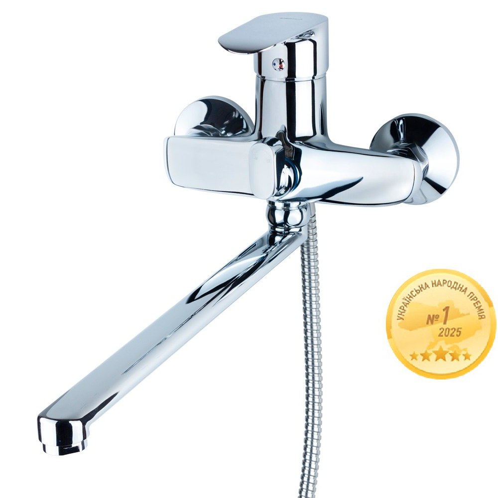 Змішувач для ванни Aquatica KN вилив прямий 350мм дивертор вбудований картриджний Ø40 мм - це надійна і довговічна модель, корпус якої виготовлений зі сплаву на основі міді, алюмінію та цинку з довговічним хромонікелевим покриттям. За точне та плавне керування температурою та напором води відповідає керамічний картридж Ø40 мм. Вбудований картриджний дивертор забезпечує легке та зручне перемикання потоку між виливом та душем. Прямий вилив довжиною 350 мм має можливість повороту на 360°, що підвищує зручність використання. Гарантія від виробника — 36 місяців.