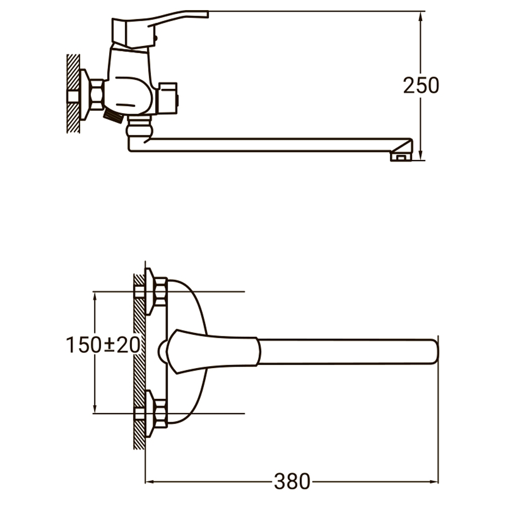 Змішувач для ванни Aquatica NM вилив прямий 350мм дивертор вбудований картриджний Ø40 мм