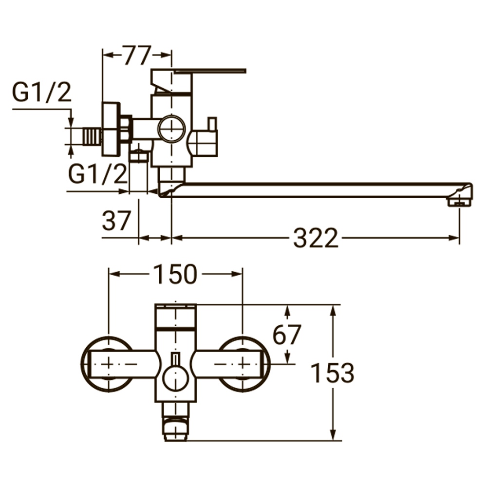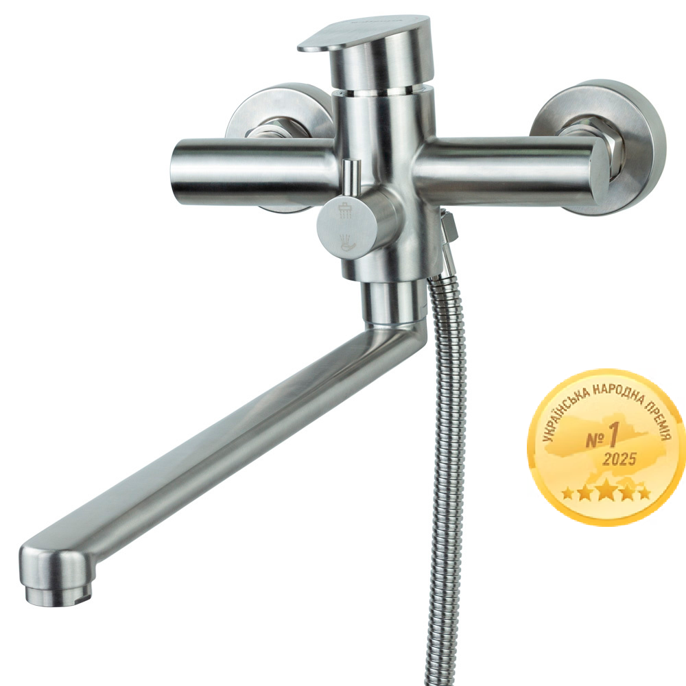 Змішувач для ванни Aquatica SS HT гусак прямий 325 мм дивертор вбудований картриджний Ø35 мм