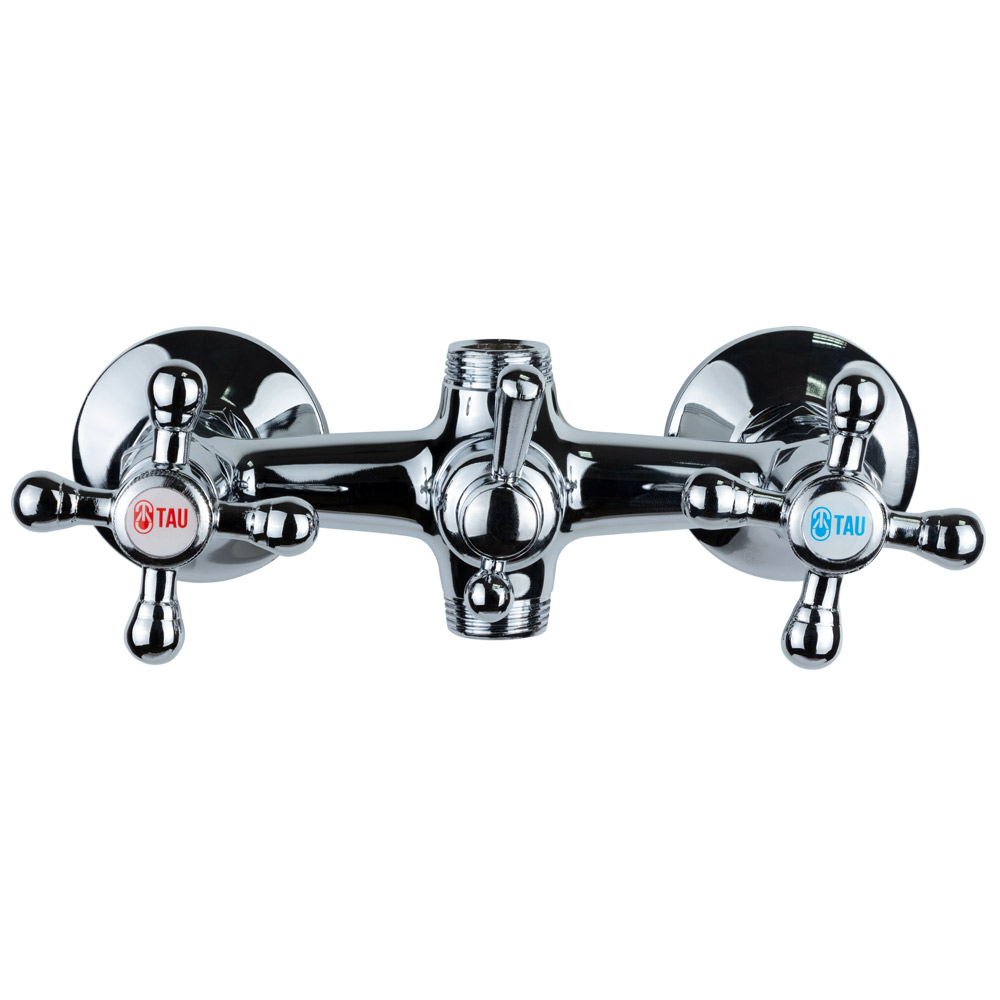 Змішувач для ванни TAU s70 ½" влив прямий 350мм дивертор вбудований кульовий - це елегантна та функціональна модель, корпус якої виготовлений з високоякісної латуні з довговічним хромонікелевим покриттям. Цей продукт виконаний у класичному стилі та оснащений двома вентилями з оригінальним дизайном та маркованими заглушками, що дозволяє йому гармонійно вписатися практично у будь-який інтер'єр ванної кімнати. За точне та плавне керування температурою та напором води відповідають надійні латунні кран-букси ½" з керамічними дисками. Вбудований кульовий дивертор забезпечує легке та зручне перемикання потоку між виливом та душем. Прямий вилив довжиною 350 мм має можливість повороту на 360°, що підвищує зручність використання. Виробник надає гарантію на цей кран — 12 місяців.